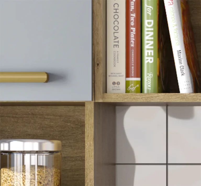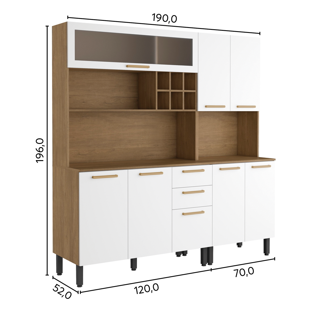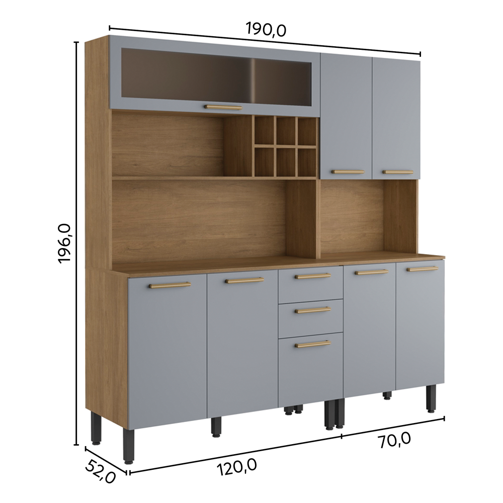 Modules with space for microwave, oven and wine cellar.