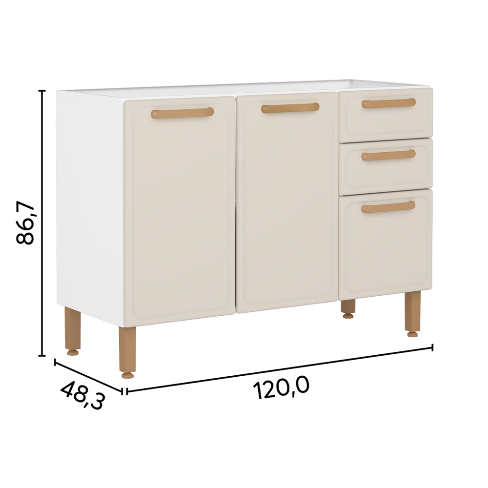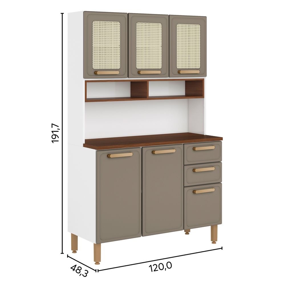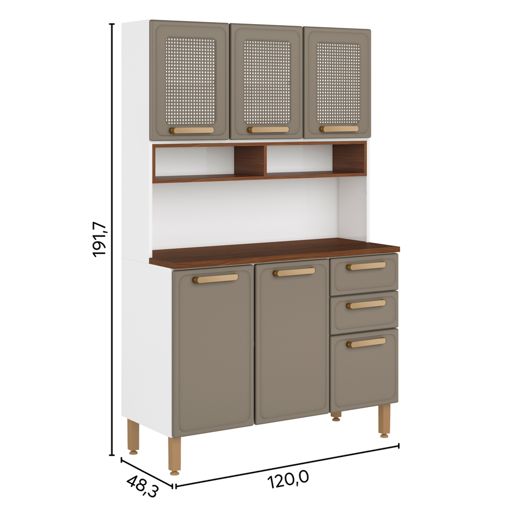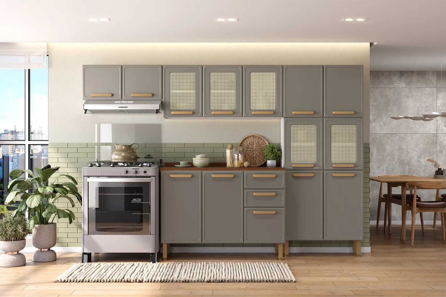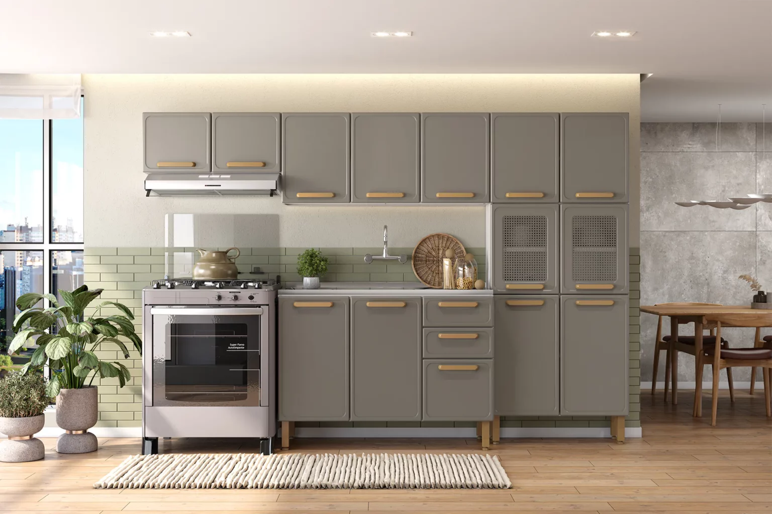 Con un color moderno alineado con las tendencias del mercado, la Línea Essência refleja sofisticación y tradición. Sus puertas con acabado hexagonal inspirado en la paja son una invitación a disfrutar de la esencia de la cocina brasileña, mientras que la modulación de 40 cm de ancho aporta practicidad al día a día, en consonancia con la robustez y durabilidad del acero.