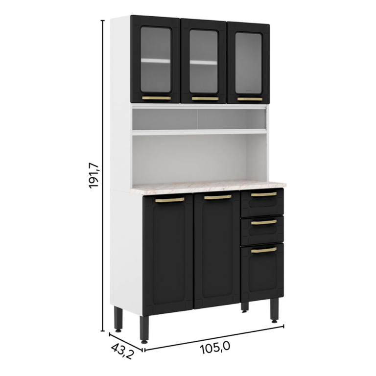 Kit 6 portas 3 vidros 2 gavetas 1 tampo – grafite