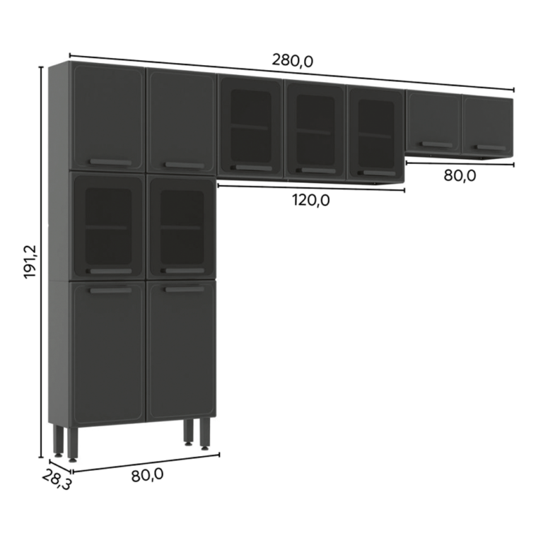 Cozinha 3 peças, paneleiro 6 portas, armário 3 portas, armário 2 portas